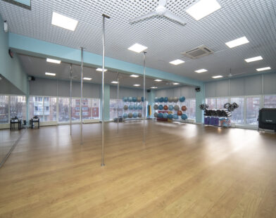 В зале установлены шесты для занятий Пилоном.