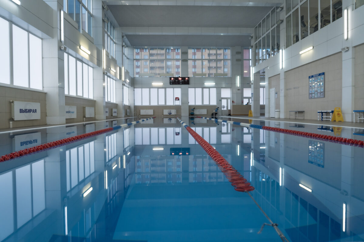 Спортивный бассейн протяженностью 25 метров, разделенный на 4 дорожки