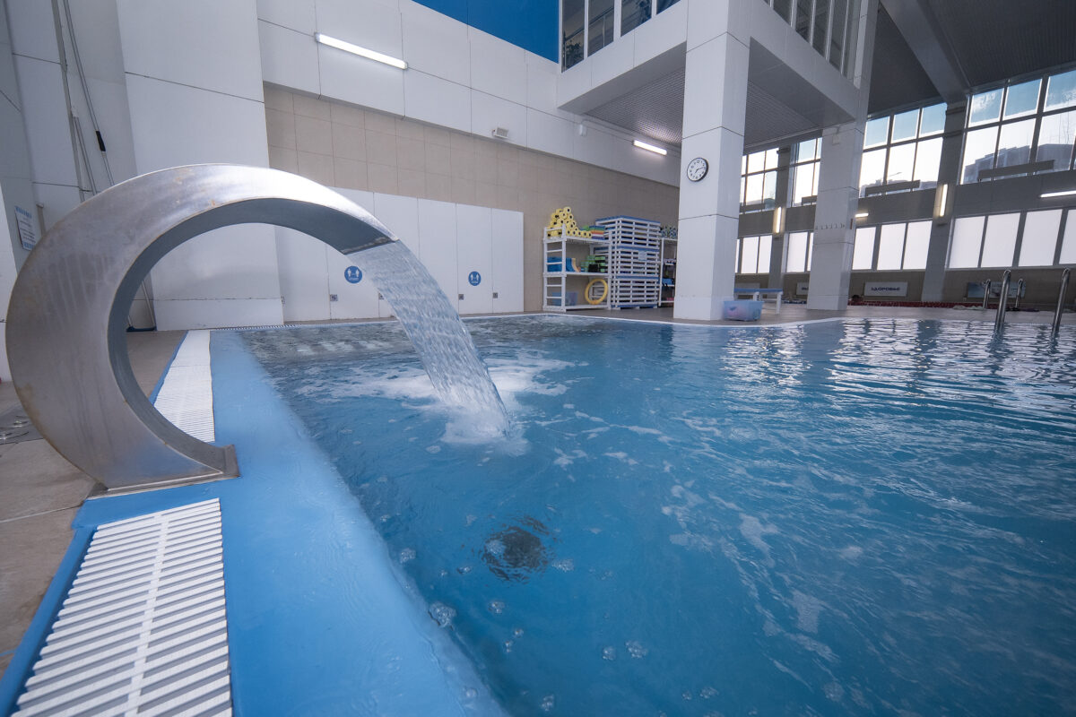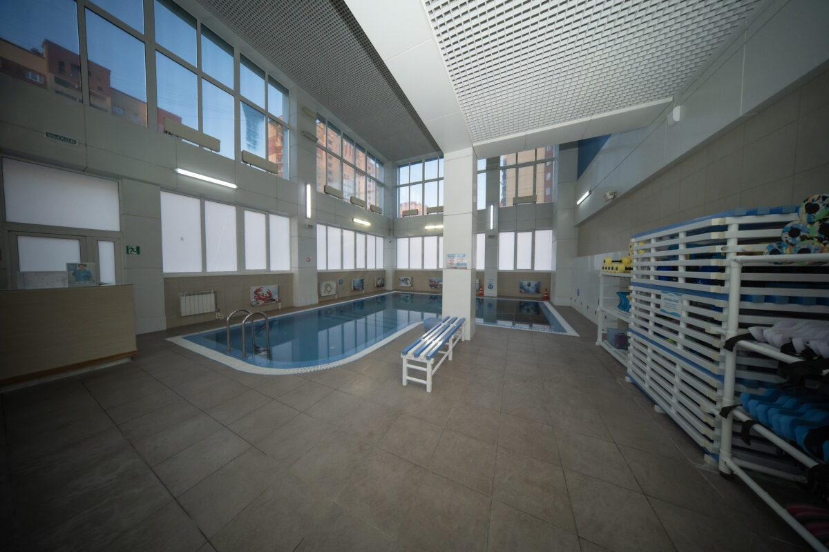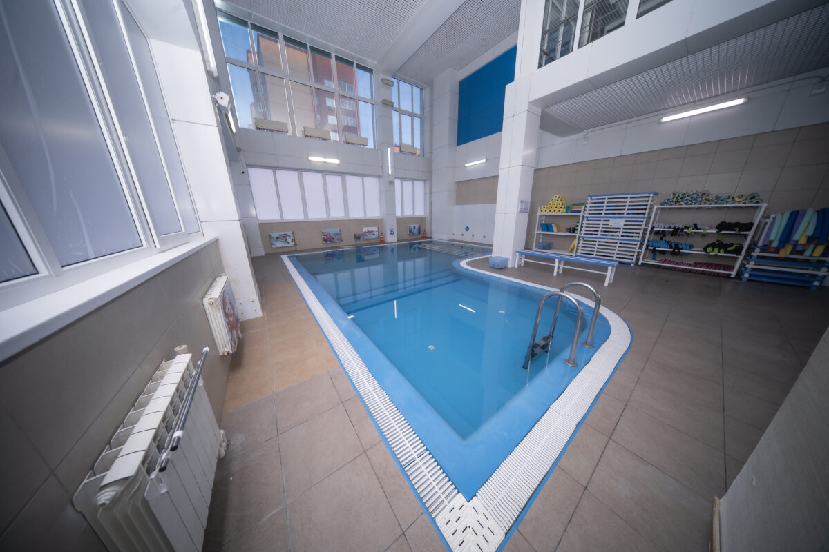 Спортивный бассейн протяженностью 25 метров разделен на 4 дорожки, и предназначен для спортивного плавания, подготовки к соревнованиям, восстановительных процедур.